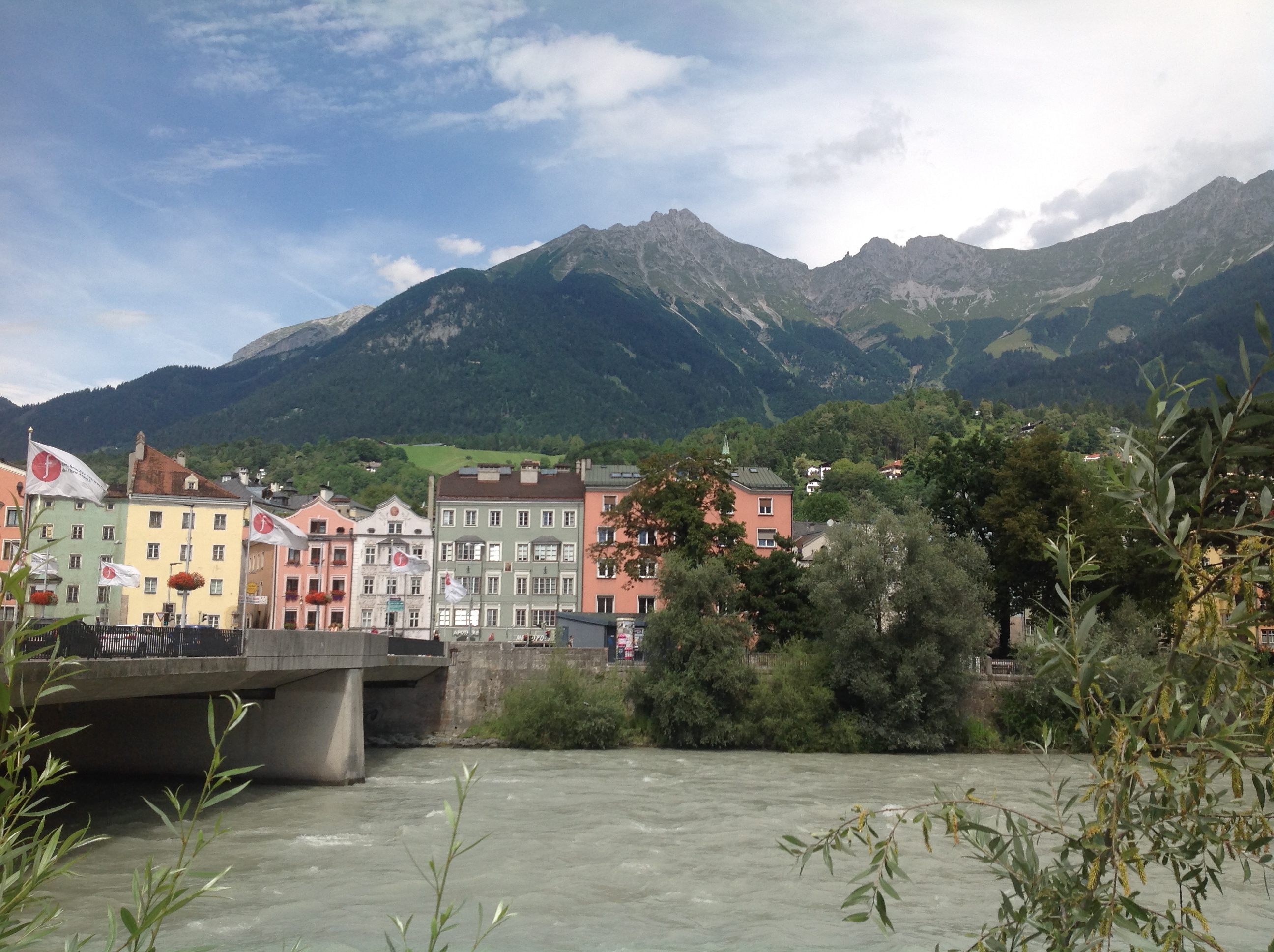 I gave a talk on work with my former student Ali Alkhaldi on the parabola in hyperbolic geometry, and canonical points associated to it, including our discovery of the fascinating Y-conic. Also on my mind is a paper on Incenter circles with my student Nguyen Le that I need to finish correcting for the illustrious journal KoG. I might tell you about that paper next time: in the meantime here are a few more pics of Innsbruck, whose German name means Bridge over the Inn (river). The Inn valley hugs the city from both sides, with outdoor activities, winter and summer, in the mountains directly accessible. Austrians who live here definitely stay fit!
